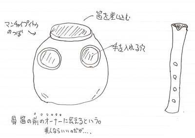 ペルー起源ケチュア族の話である。人骨でもケーナでない笛もある。