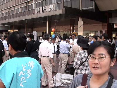 JR鹿児島本線で9時50分博多駅着 駅前はすでに博多どんたく一色!でっかいステージ、そろいの衣装の軍団・・・私たちは、今夜から2泊するニュー白木屋ホテルへ
