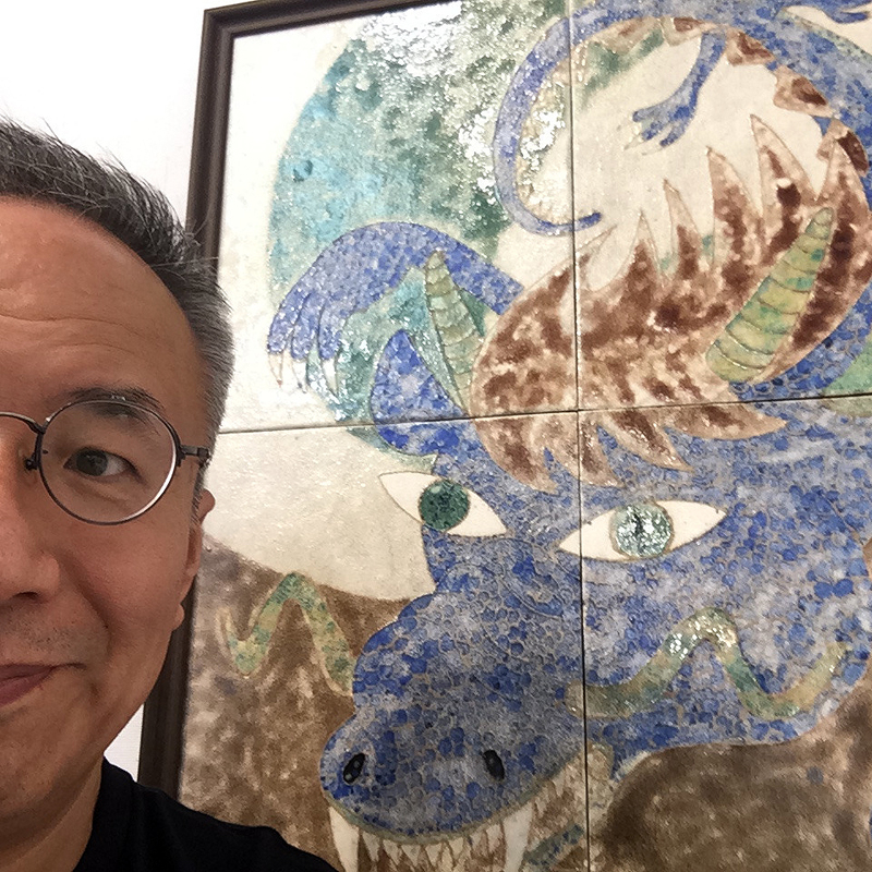 陶のキャンバスに釉薬で絵を描く「陶板」の制作を始めて7年経ちました。その間に、美しい色を求めて、調合した釉薬は400種を超えます。素焼きした板に釉薬を置いていくワクワク感、1250℃の窯での焼成から窯出しまでのドキドキ感、窯の中から取り出した作品と対面しての泣き笑い、今の私にとって生きてるって実感できる瞬間です。 木村健太郎(2025年2月) |