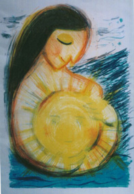 これも同タイトルのフォルクローレからヒントを得て描きました。 ある貧しい村に恋人たちがいました。男は、働き口を探しに都会へ行ってしまい、戻ってきません。もしかしたら、とっくに新しい恋人ができているかもしれません。女の子はずっと待っていたのです。彼の残していったポンチョには、彼のぬくもりが残っているような気がして、かぶってみたら、涙がとまらなくなってしまいました。 |