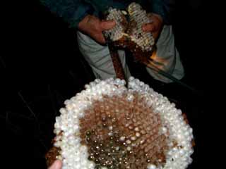 - 蜂おじさんが言うには、夜になって蜂が全員巣に帰ってから一網打尽にする、とのこと。